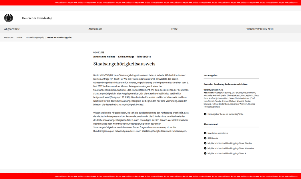 06.11.2025 - die Vorbereitungen laufen und die rechtlichen Fragen sind in der Klärung. Deutschland entsteht gerade und alle Bewohner werden zur Klärung ihrer Abstammung nach dem Gesetz der Bundesrepublik Deutschland (gesetzliche Regelung zur doppelten Staatsangehörigkeit der Bundesrepublik Deutschland vom 27. Juni 2024) angehalten. Wir werden bald eine Möglichkeit für Nachfragen eingerichtet haben.